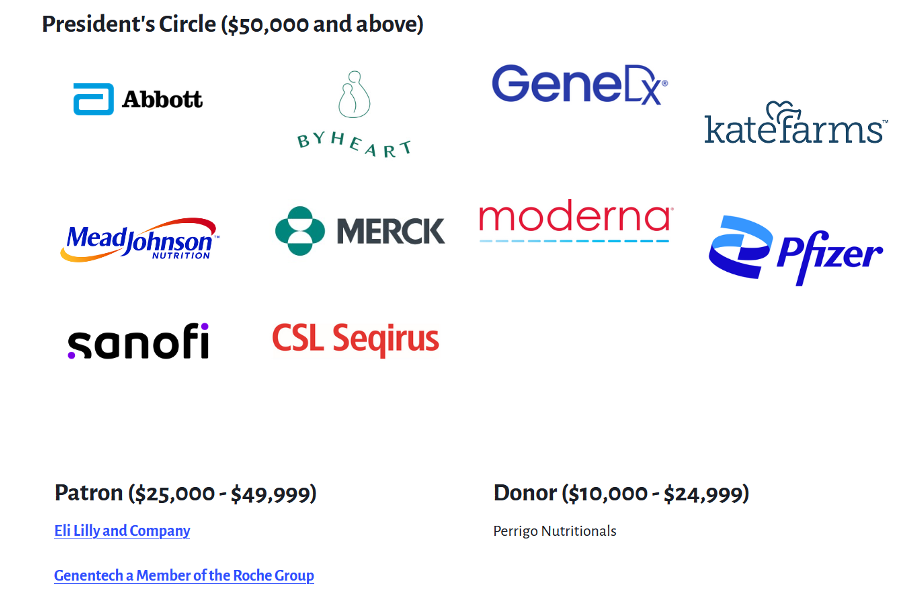 AAP, of course, has a long history of receiving funding from pharmaceutical companies, health insurance companies, and medical device manufacturers, and junk food companies like Coca Cola (a partnership that was canceled for being too shameful even for their members). This dynamic creates structural incentives that clearly shape AAP's priorities over the years. Funding from these partners would not flow if there were not an alignment on research priorities, educational materials, and advocacy emphasis. AAP itself admits: