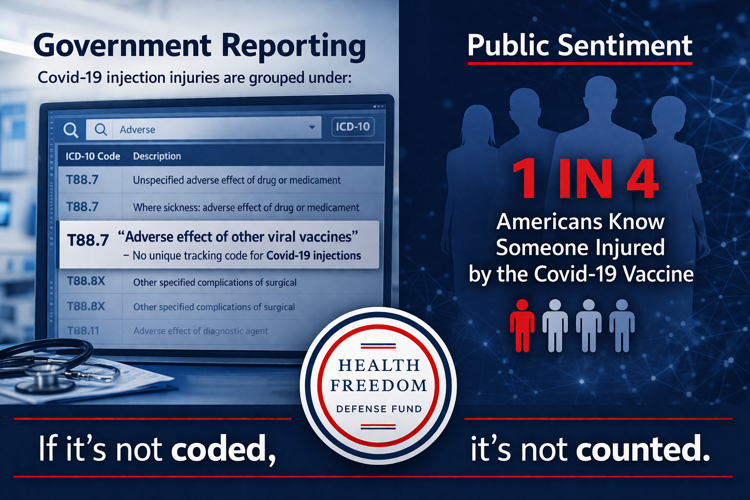Health Freedom Defense Fund (HFDF) supports the proposed move by the National Center for Health Statistics team at the ICD-10 Coordination and Maintenance Committee Meeting on March 17th and 18th, 2026, to institute a unique code for adverse events from Covid-19 injections. This would go far in disentangling the data for better research, supportive care, and recognition for those who have been injured or who have even died as the result of taking these products. In the words of the CDC’s own NCHS, this will “enable clinicians, researchers, and public health professionals to identify, track, and study these cases.”