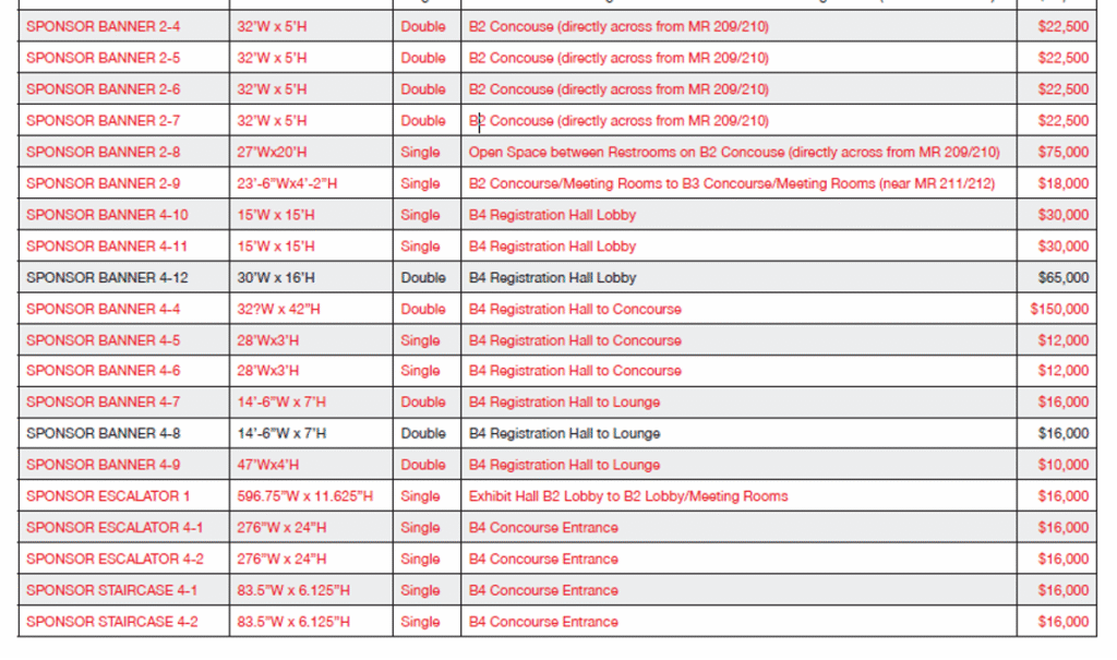 5. 2025 IDWeek Prospectus, Pg. 13. Sample of banner costs, note the $150,000 and $60,000 banners: