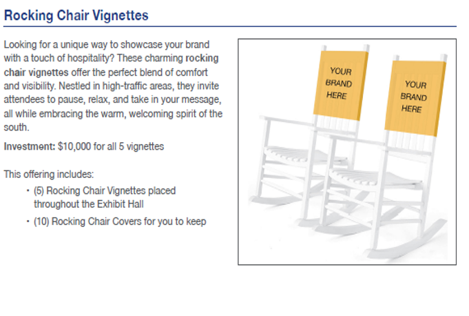These services provided are clearly not charitable by any reasonable measure, as the revenue is almost entirely fees for display booths, corporate advertisements, and closed-door, private meetings (as described in the shocking Annex to this report at the end of this article). As a few examples: corporations can pay $90,000 to wrap the morning's Wall Street Journal with an ad in attendee's hotels for a single day, or pay $15,000 for a mere three posts on X from IDSA's account, or pay $57,000 for three days of a graphic on an escalator. In the 2025 prospectus, "Sponsor Banner 4-4" seems particularly sought after: it can be unfurled for a mere $150,000 for the 4 days on the way to the concourse. If you're a biotech company on a budget, for $30,000, your company's name can grace the luxurious "seating cubes" present at the strangely chairless conference, or even five rocking chairs with your brand on them ("the perfect blend of comfort and visibility").